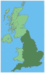 green, and Scotland in the North in the lighter green, and Northern Ireland
